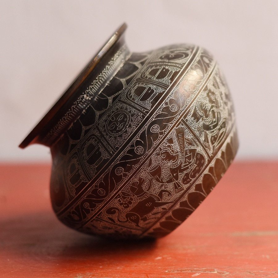 Artistic Legacy: This beautifully crafted brassware from Khajuraho reflects the rich cultural heritage of India, featuring detailed patterns that tell timeless stories, adding a touch of elegance to your decor.