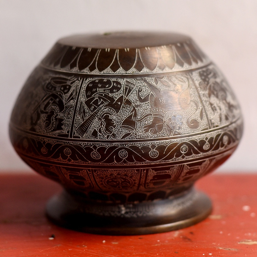 Artistic Legacy: This beautifully crafted brassware from Khajuraho reflects the rich cultural heritage of India, featuring detailed patterns that tell timeless stories, adding a touch of elegance to your decor.